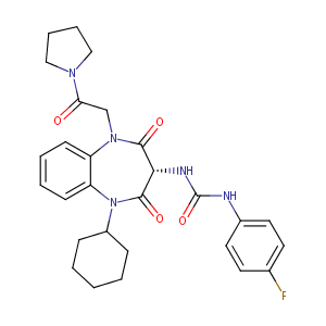 N1(C(=O)[C@@H](C(=O)N(c2c1cccc2)C1CCCCC1)NC(=O)Nc1ccc(F<br />)cc1)CC(=O)N1CCCC1