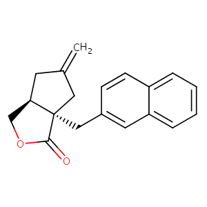 InChI=1S/C19H18O2/c1-13-8-17-12-21-18(20)19(17,10-13)11-14-6-7-15-4-2-3-5-16(15)9-14/h2-7,9,17H,1,8,10-12H2/t17-,19+/m1/s1
