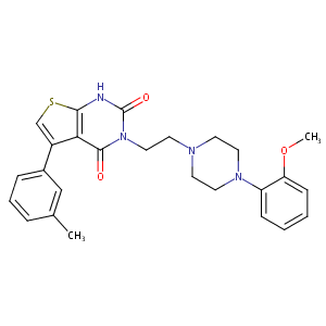 InChI=1S/C26H28N4O3S/c1-18-6-5-7-19(16-18)20-17-34-24-23(20)25(31)30(26(32)27-24)15-12-28-10-13-29(14-11-28)21-8-3-4-9-22(21)33-2/h3-9,16-17H,10-15H2,1-2H3,(H,27,32)