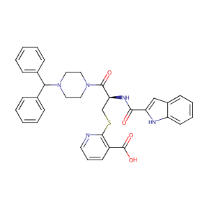 InChI=1S/C35H33N5O4S/c41-32(29-22-26-14-7-8-16-28(26)37-29)38-30(23-45-33-27(35(43)44)15-9-17-36-33)34(42)40-20-18-39(19-21-40)31(24-10-3-1-4-11-24)25-12-5-2-6-13-25/h1-17,22,30-31,37H,18-21,23H2,(H,38,41)(H,43,44)/t30-/m0/s1