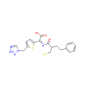 C1=CC=C(C=C1)CCC(CS)C(=O)N=C(C2=CC=C(S2)CN3C=NN=N3)C(=O<br />)O