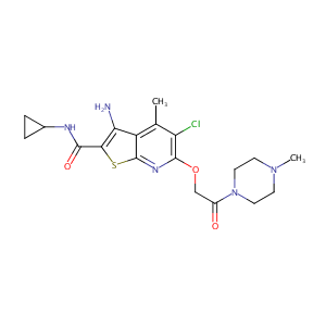InChI=1S/C19H24ClN5O3S/c1-10-13-15(21)16(17(27)22-11-3-4-11)29-19(13)23-18(14(10)20)28-9-12(26)25-7-5-24(2)6-8-25/h11H,3-9,21H2,1-2H3,(H,22,27)