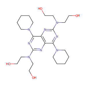 InChI=1S/C24H40N8O4/c33-15-11-31(12-16-34)23-26-20-19(21(27-23)29-7-3-1-4-8-29)25-24(32(13-17-35)14-18-36)28-22(20)30-9-5-2-6-10-30/h33-36H,1-18H2