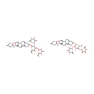 [C@@H]1([C@@H]([C@H]([C@@H]([C@H](O1)CO)O)O)O)O[C@H]1[C<br />@@H](O)[C@H](O[C@@H](O[C@H]2CC[C@]3(C(=CC[C@@H]4[C@@H]3<br />CC[C@]3([C@H]4C[C@H]4[C@@H]3[C@@H]([C@@]3(CC[C@H](CN3)C<br />)O4)C)C)C2)C)[C@@H]1O[C@@H]1O[C@H]([C@@H]([C@H]([C@H]1O<br />)O)O)C)CO.[C@@H]1([C@@H]([C@@H]([C@H]([C@@H](O1)C)O)O)O<br />)O[C@@H]1[C@H](O[C@@H](O[C@H]2CC[C@]3(C(=CC[C@@H]4[C@@H<br />]3CC[C@]3([C@H]4C[C@H]4[C@@H]3[C@@H]([C@@]3(CC[C@H](CN3<br />)C)O4)C)C)C2)C)[C@@H]([C@H]1O)O[C@@H]1O[C@H]([C@@H]([C@<br />H]([C@H]1O)O)O)C)CO