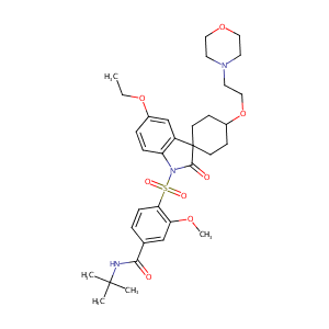 InChI=1S/C33H45N3O8S/c1-6-43-25-8-9-27-26(22-25)33(13-11-24(12-14-33)44-20-17-35-15-18-42-19-16-35)31(38)36(27)45(39,40)29-10-7-23(21-28(29)41-5)30(37)34-32(2,3)4/h7-10,21-22,24H,6,11-20H2,1-5H3,(H,34,37)