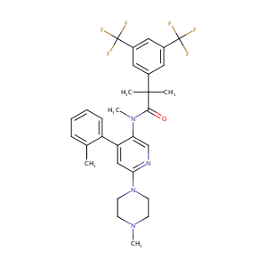 InChI=1S/C30H32F6N4O/c1-19-8-6-7-9-23(19)24-17-26(40-12-10-38(4)11-13-40)37-18-25(24)39(5)27(41)28(2,3)20-14-21(29(31,32)33)16-22(15-20)30(34,35)36/h6-9,14-18H,10-13H2,1-5H3