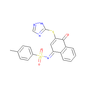CC1=CC=C(C=C1)S(=O)(=O)N=C2C=C(C(=O)C3=CC=CC=C32)SC4=NC<br />=NN4