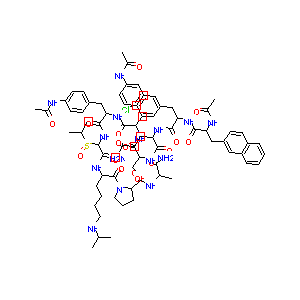 CC(C)NCCCCC(C(=O)N1CCCC1C(=O)NC(C)C(=O)N)NC(=O)C(NC(=O)<br />C(CC2=CC=C(C=C2)NC(=O)C)NC(=O)C(CC3=CC=C(C=C3)NC(=O)C)N<br />C(=O)C(CO)NC(=O)C(CCC(=O)N)NC(=O)C(CC4=CC=C(C=C4)Cl)NC(<br />=O)C(CC5=CC6=CC=CC=C6C=C5)NC(=O)C)S(=O)C(C)C