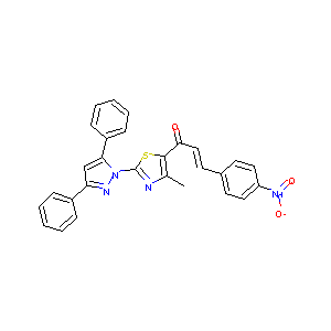 CC1=C(SC(=N1)N2C(=CC(=N2)C3=CC=CC=C3)C4=CC=CC=C4)C(=O)C<br />=CC5=CC=C(C=C5)[N+](=O)[O-]