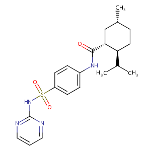 InChI=1S/C21H28N4O3S/c1-14(2)18-10-5-15(3)13-19(18)20(26)24-16-6-8-17(9-7-16)29(27,28)25-21-22-11-4-12-23-21/h4,6-9,11-12,14-15,18-19H,5,10,13H2,1-3H3,(H,24,26)(H,22,23,25)/t15-,18+,19-/m1/s1