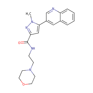 n1(nc(cc1c1cnc2c(c1)cccc2)C(=O)NCCN1CCOCC1)C