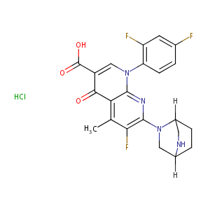 CC1=C2C(=O)C(=CN(C2=NC(=C1F)N3CC4CCC3CN4)C5=C(C=C(C=C5)<br />F)F)C(=O)O.Cl