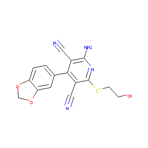 C1OC2=C(O1)C=C(C=C2)C3=C(C(=NC(=C3C#N)SCCO)N)C#N