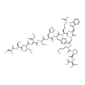 C1CN([C@@H](C1)C(=O)N[C@H](C(=O)N)C(C)C)C(=O)[C@@H](NC(<br />=O)CNC(=O)[C@@H](NC(=O)[C@@H](NC(=O)[C@@H](NC(=O)[C@@H]<br />(NC(=O)[C@@H](NC(=O)[C@@H](NC(=O)[C@@H](NC(=O)[C@@H](NC<br />(=O)[C@@H](N)CO)CO)[C@@H](C)CC)[C@@H](C)CC)CO)Cc1c[nH]c<br />n1)Cc1ccccc1)CCCNC(=N)N)Cc1c[nH]c2c1cccc2)CCCCN