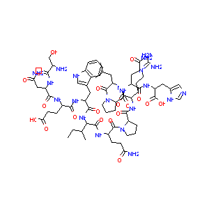 CCC(C)C(C(=O)NC(CCC(=O)N)C(=O)N1CCCC1C(=O)NC(CCCN=C(N)N<br />)C(=O)NC(CC(C)C)C(=O)N2CCCC2C(=O)NC(CCC(=O)N)C(=O)NC(CC<br />3=CN=CN3)C(=O)O)NC(=O)C(CC4=CNC5=CC=CC=C54)NC(=O)C(CCC(<br />=O)O)NC(=O)C(CC(=O)N)NC(=O)C(CO)N