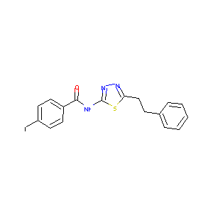 C1=CC=C(C=C1)CCC2=NN=C(S2)NC(=O)C3=CC=C(C=C3)I