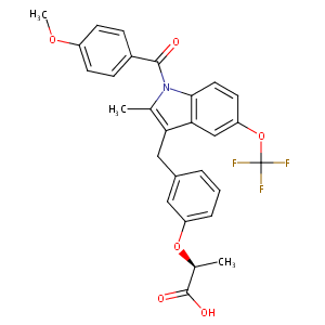 InChI=1S/C28H24F3NO6/c1-16-23(14-18-5-4-6-21(13-18)37-17(2)27(34)35)24-15-22(38-28(29,30)31)11-12-25(24)32(16)26(33)19-7-9-20(36-3)10-8-19/h4-13,15,17H,14H2,1-3H3,(H,34,35)/t17-/m0/s1