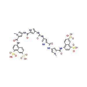 CN1C=C(C=C1C(=O)NC2=C3C=CC(=CC3=C(C=C2)S(=O)(=O)[O-])S(<br />=O)(=O)[O-])NC(=O)C4=CC(=CN4)NC(=O)NC5=CNC(=C5)C(=O)NC6<br />=CN(C(=C6)C(=O)NC7=C8C=CC(=CC8=C(C=C7)S(=O)(=O)[O-])S(=<br />O)(=O)[O-])C.[Na+].[Na+].[Na+].[Na+]