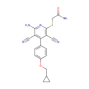InChI=1S/C19H17N5O2S/c20-7-14-17(12-3-5-13(6-4-12)26-9-11-1-2-11)15(8-21)19(24-18(14)23)27-10-16(22)25/h3-6,11H,1-2,9-10H2,(H2,22,25)(H2,23,24)