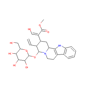 COC(=O)C(=CO)C1CC2C3=C(CCN2C(C1C=C)OC4C(C(C(C(O4)CO)O)O<br />)O)C5=CC=CC=C5N3