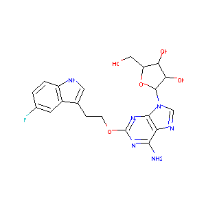 C1=CC2=C(C=C1F)C(=CN2)CCOC3=NC4=C(C(=N3)N)N=CN4C5C(C(C(<br />O5)CO)O)O