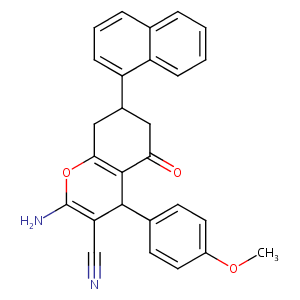InChI=1S/C27H22N2O3/c1-31-19-11-9-17(10-12-19)25-22(15-28)27(29)32-24-14-18(13-23(30)26(24)25)21-8-4-6-16-5-2-3-7-20(16)21/h2-12,18,25H,13-14,29H2,1H3