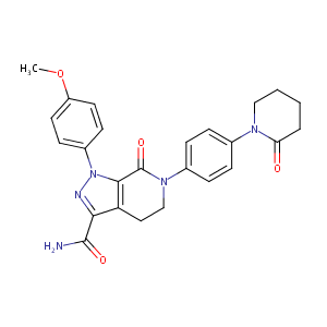 GG2; BMS 562247-01; BMS-562247; Eliquis (TN); BMS-562247-01; Apixaban (JAN/USAN/INN); BMS-562247-01, Apixaban; Ro-1H-pyrazolo[3,4-c]pyridine-3-carboxylic acid amide; 1-(4-Methoxyphenyl)-7-oxo-6-[4-(2-oxopiperidin-1-yl)phenyl]-4,5,6,7-tetrahyd
