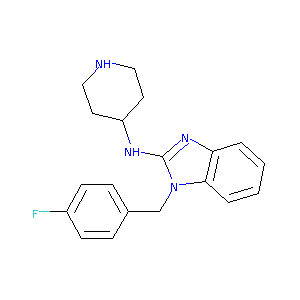 1S/C19H21FN4/c20-15-7-5-14(6-8-15)13-24-18-4-2-1-3-17(18)23-19(24)22-16-9-11-21-12-10-16/h1-8,16,21H,9-13H2,(H,22,23)