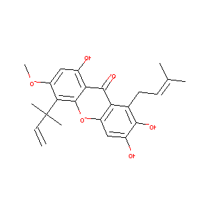 CC(=CCC1=C2C(=CC(=C1O)O)OC3=C(C2=O)C(=CC(=C3C(C)(C)C=C)<br />OC)O)C
