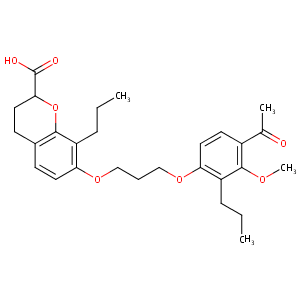 InChI=1S/C28H36O7/c1-5-8-21-23(13-10-19-11-14-25(28(30)31)35-26(19)21)33-16-7-17-34-24-15-12-20(18(3)29)27(32-4)22(24)9-6-2/h10,12-13,15,25H,5-9,11,14,16-17H2,1-4H3,(H,30,31)
