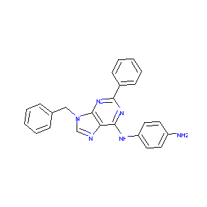 C1=CC=C(C=C1)CN2C=NC3=C2N=C(N=C3NC4=CC=C(C=C4)N)C5=CC=C<br />C=C5