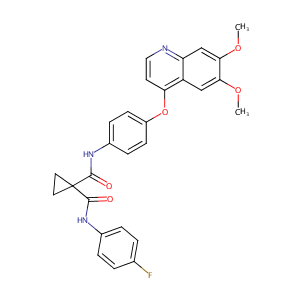 InChI=1S/C28H24FN3O5/c1-35-24-15-21-22(16-25(24)36-2)30-14-11-23(21)37-20-9-7-19(8-10-20)32-27(34)28(12-13-28)26(33)31-18-5-3-17(29)4-6-18/h3-11,14-16H,12-13H2,1-2H3,(H,31,33)(H,32,34)