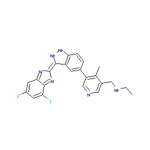 CCNCC1=C(C(=CN=C1)C2=CC3=C(C=C2)NNC3=C4N=C5C=C(C=C(C5=N<br />4)F)F)C