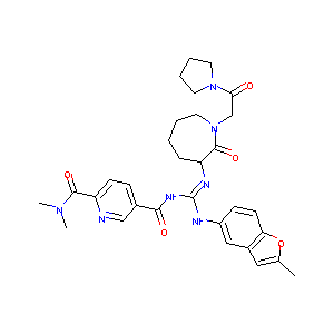 CC1=CC2=C(O1)C=CC(=C2)NC(=NC3CCCCN(C3=O)CC(=O)N4CCCC4)N<br />C(=O)C5=CN=C(C=C5)C(=O)N(C)C