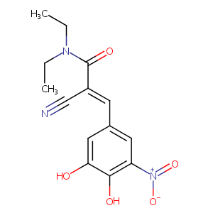 Comtan; Comtess; Entacapona; Entacaponum; Novartis brand of entacapone; Orion brand of entacapone; KB475572; OR 611; COM-998; Comtan (TN); Entacapona [INN-Spanish]; Entacapone [USAN:INN]; Entacaponum [INN-Latin]; OR-611; Stalevo (TN); Entacapone (JAN/USAN/INN); N,N-diethyl-2-cyano-3-(3,4-dihydroxy-5-nitrophenyl) acrylamide; (2E)-2-cyano-3-(3,4-dihydroxy-5-nitrophenyl)-N,N-diethylprop-2-enamide; (E)-2-Cyano-3-(3,4-dihydroxy-5-nitrophenyl)-N,N-diethyl-2-propenamide; (E)-2-cyano-3-(3,4-dihydroxy-5-nitro-phenyl)-N,N-diethyl-prop-2-enamide; (E)-2-cyano-3-(3,4-dihydroxy-5-nitrophenyl)-N,N-diethylprop-2-enamide; (E)-alpha-Cyano-N,N-diethyl-3,4-dihydroxy-5-nitrocinnamamide; 2-Cyano-N,N-diethyl-3-(3,4-dihydroxy-5-nitrophenyl)propenamide