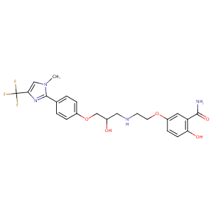 InChI=1S/C23H25F3N4O5/c1-30-12-20(23(24,25)26)29-22(30)14-2-4-16(5-3-14)35-13-15(31)11-28-8-9-34-17-6-7-19(32)18(10-17)21(27)33/h2-7,10,12,15,28,31-32H,8-9,11,13H2,1H3,(H2,27,33)