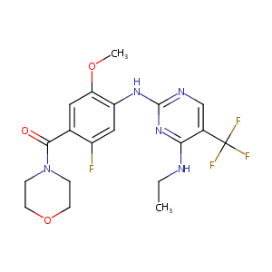 InChI=1S/C19H21F4N5O3/c1-3-24-16-12(19(21,22)23)10-25-18(27-16)26-14-9-13(20)11(8-15(14)30-2)17(29)28-4-6-31-7-5-28/h8-10H,3-7H2,1-2H3,(H2,24,25,26,27)