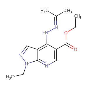 InChI=1S/C14H19N5O2/c1-5-19-13-10(8-16-19)12(18-17-9(3)4)11(7-15-13)14(20)21-6-2/h7-8H,5-6H2,1-4H3,(H,15,18)
