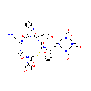 CC(C1C(=O)NC(CSSCC(C(=O)NC(C(=O)NC(C(=O)NC(C(=O)N1)CCCC<br />N)CC2=CNC3=CC=CC=C32)CC4=CC=C(C=C4)O)NC(=O)C(CC5=CC=CC=<br />C5)NC(=O)CN6CCN(CCN(CCN(CC6)CC(=O)O)CC(=O)O)CC(=O)O)C(=<br />O)NC(CO)C(C)O)O