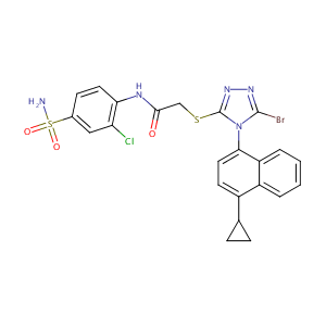 O=S(=O)(c1cc(c(NC(=O)CSc2n(c(Br)nn2)c2ccc(C3CC3)c3c2ccc<br />c3)cc1)Cl)N