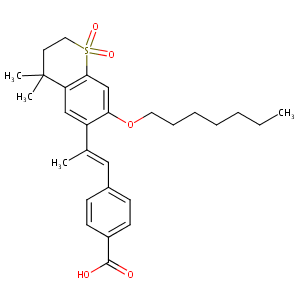 InChI=1S/C28H36O5S/c1-5-6-7-8-9-15-33-25-19-26-24(28(3,4)14-16-34(26,31)32)18-23(25)20(2)17-21-10-12-22(13-11-21)27(29)30/h10-13,17-19H,5-9,14-16H2,1-4H3,(H,29,30)/b20-17+