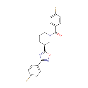 InChI=1S/C20H17F2N3O2/c21-16-7-3-13(4-8-16)18-23-19(27-24-18)15-2-1-11-25(12-15)20(26)14-5-9-17(22)10-6-14/h3-10,15H,1-2,11-12H2/t15-/m0/s1