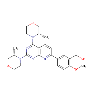 InChI=1S/C25H31N5O4/c1-16-14-33-10-8-29(16)24-20-5-6-21(18-4-7-22(32-3)19(12-18)13-31)26-23(20)27-25(28-24)30-9-11-34-15-17(30)2/h4-7,12,16-17,31H,8-11,13-15H2,1-3H3/t16-,17-/m0/s1