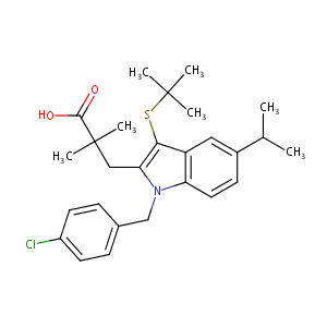 InChI=1S/C27H34ClNO2S/c1-17(2)19-10-13-22-21(14-19)24(32-26(3,4)5)23(15-27(6,7)25(30)31)29(22)16-18-8-11-20(28)12-9-18/h8-14,17H,15-16H2,1-7H3,(H,30,31)