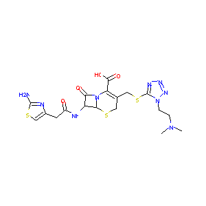 CN(C)CCN1C(=NN=N1)SCC2=C(N3C(C(C3=O)NC(=O)CC4=CSC(=N4)N<br />)SC2)C(=O)O