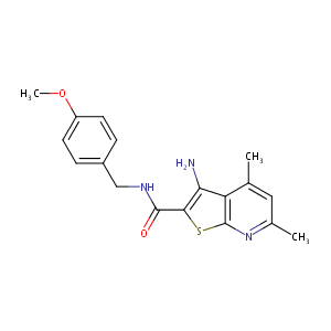 InChI=1S/C18H19N3O2S/c1-10-8-11(2)21-18-14(10)15(19)16(24-18)17(22)20-9-12-4-6-13(23-3)7-5-12/h4-8H,9,19H2,1-3H3,(H,20,22)
