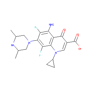 CC1CN(CC(N1)C)C2=C(C3=C(C(=C2F)N)C(=O)C(=CN3C4CC4)C(=O)<br />O)F