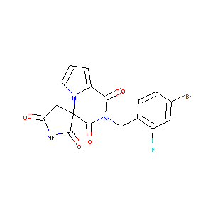 C1C(=O)NC(=O)C12C(=O)N(C(=O)C3=CC=CN23)CC4=C(C=C(C=C4)B<br />r)F