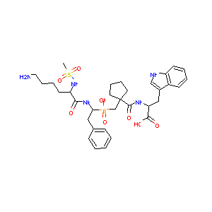CS(=O)(=O)NC(CCCCN)C(=O)NC(CC1=CC=CC=C1)P(=O)(CC2(CCCC2<br />)C(=O)NC(CC3=CNC4=CC=CC=C43)C(=O)O)O