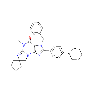 CN1C(=O)C2=C(N=C(N2CC3=CC=CC=C3)C4=CC=C(C=C4)C5CCCCC5)N<br />6C1=NC7(C6)CCCC7